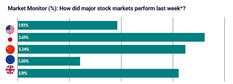 A strong week for global equities, as favourable economic data supported risk-on sentiment. Japanese equities led the way, rallying strongly following the announcement of Sanae Takaichi as new prime minister.